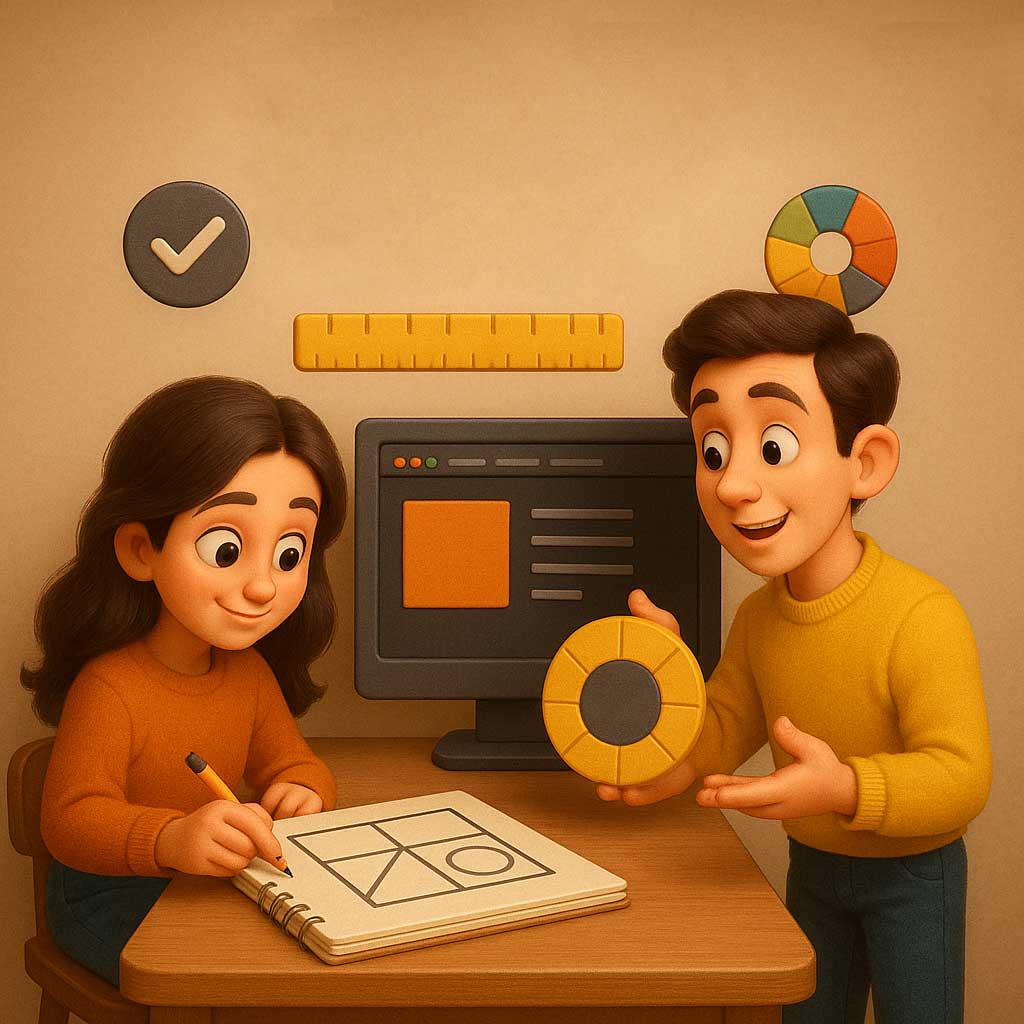 اتودهای گرافیکی: انتخاب پالت، تایپوگرافی، گریدبندی، آیکون و المانهای بصری.